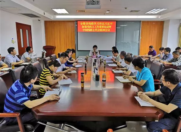 安徽省残联党组成员、副理事长钱玉贵、赵卫弘、何邦扣,副巡视员汪兴华、安徽省纪委监委驻省民政厅纪检监察组副组长杨安成出席会议,安徽省残联专门协会部分在肥负责同志,安徽省残联机关全体人员、直属单位负责同志,合肥市残联主要负责同志、残疾人代表及有关人员参加了会议。