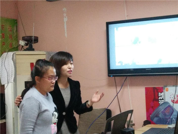 2017年李璐在给万莲阳光之家孩子们上课,自闭症学生金驰已经可以给李璐做助教了