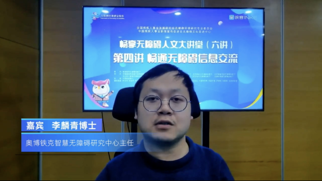 奥博铁克(苏州)智能科技智慧无障碍研究中心主任李麟青博士分享科技应用《“一米无障碍地图”插上腾飞的双翼》等。