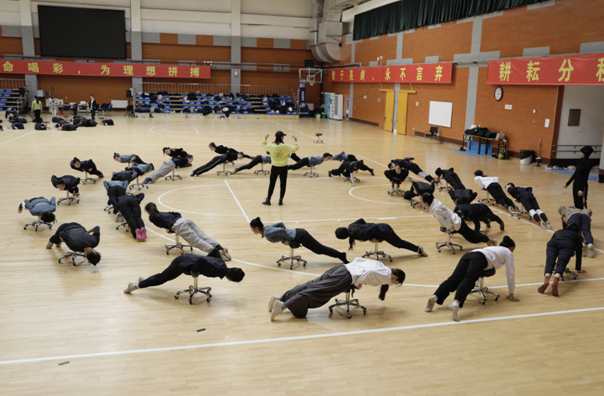 圆舞曲这支舞蹈需要表演者通过转椅完成动作,转椅和人如何协调一致,如何控制好转椅,就成了舞蹈成败的关键,这是老师们最担心的地方,也是整个团队练习时间最长的部分,以确保在正式演出时万无一失。