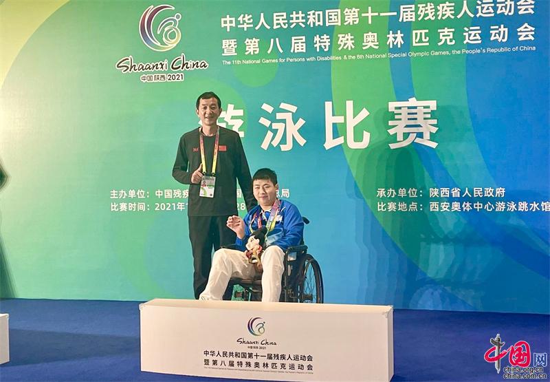 罗恒一在2021年全国第十一届残特奥会男子S2级50米仰泳决赛中夺冠(受访者供图)