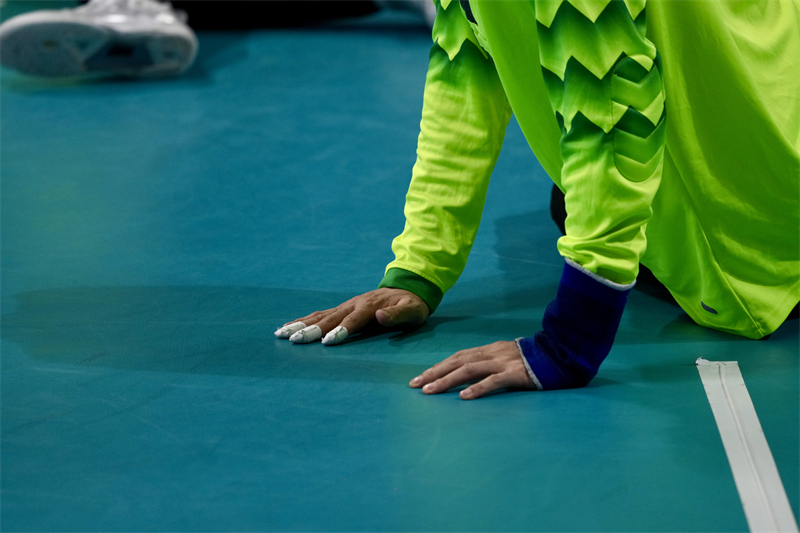 “我们使用的球有1.25公斤,不光是比赛,在训练中也会不时受伤”,上海盲人门球男队队员邵帅对记者说道。虽然对方是实力强劲的浙江队,但上海队队员们在面对飞来的皮球时,也毫不畏惧。盲人门球有一项较为特殊的规则,就是在比赛中,若一方领先对方10个球,则比赛提前结束。今天这场比赛的比分最终定格在12比3,上海队咬紧了牙关,没有让比赛提前结束。