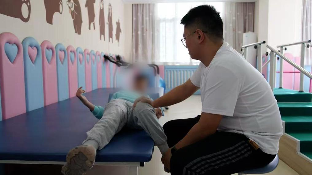 康复师为她定制专属训练计划,社工邬君梅更是五年如一日悉心陪伴着她练习。如今,萍萍肌张力降至2级、肌力达4级,可独立行走15步,辅助下能完成木钉抓放和独立套圈训练。“她能独立走15步左右,这太喜人了。”邬君梅说着,眼里就冒出了泪花。