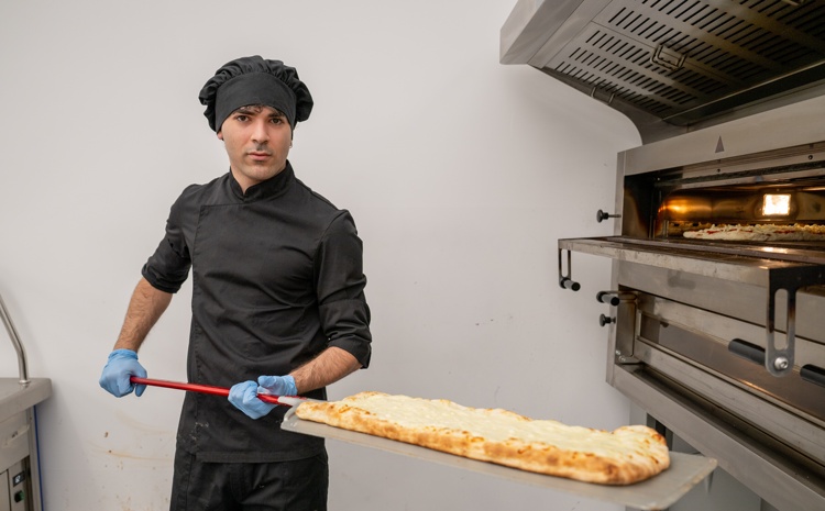 A chef shows off the pizza he makes at the Paralympic Village of the Milan-Cortina 2026 Paralympic Winter Games in Cortina d'Ampezzo, Italy, March 3, 2026. (Xinhua/Lian Zhen)