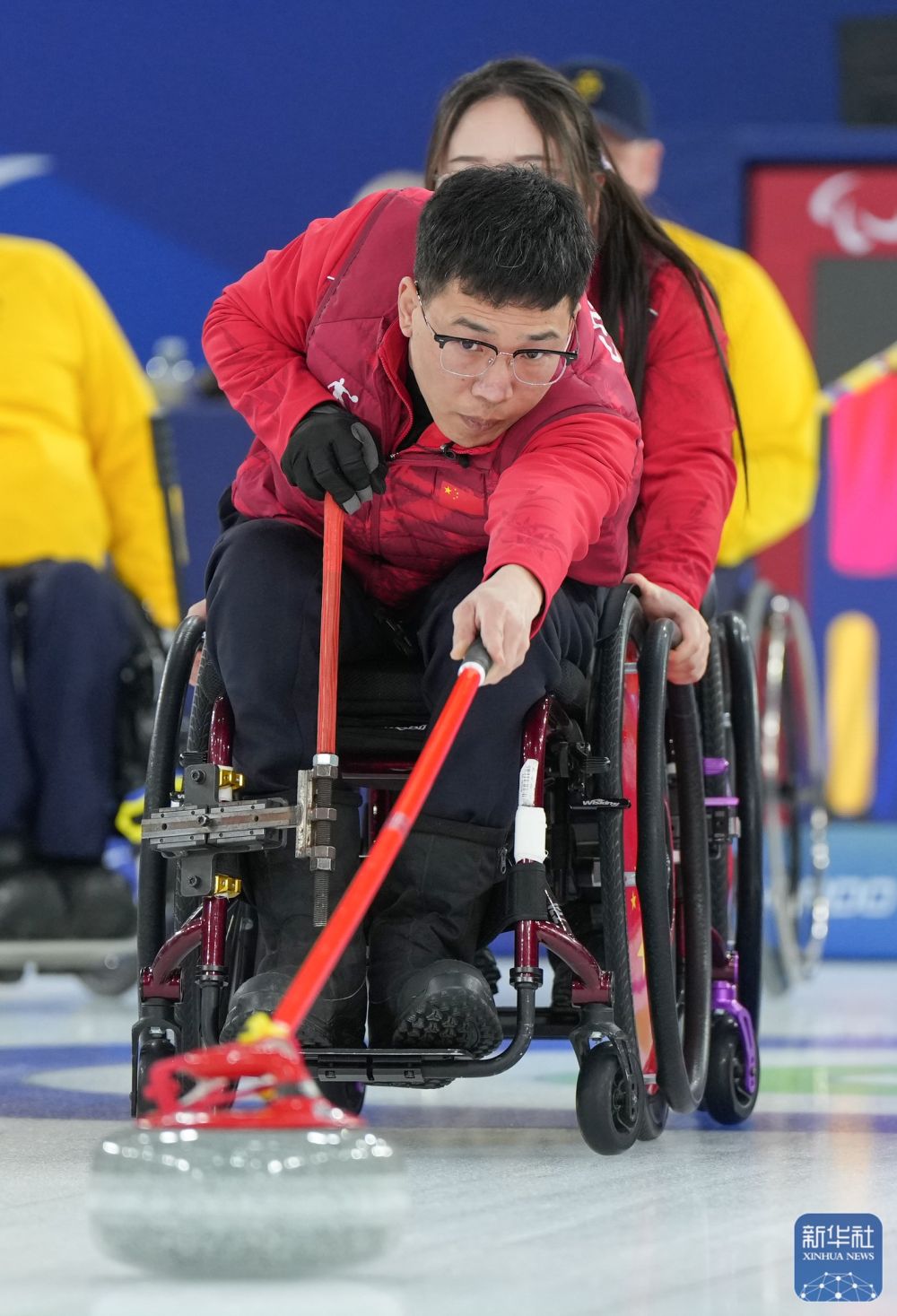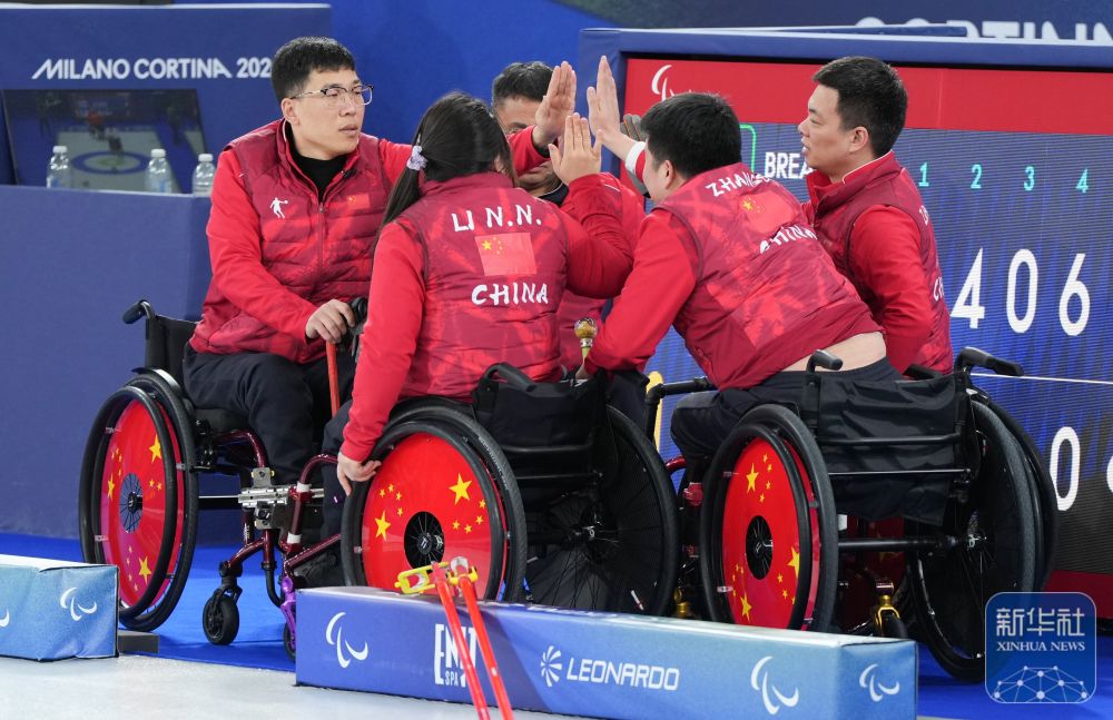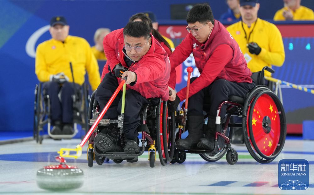 当地时间3月12日,在意大利科尔蒂纳举行的米兰-科尔蒂纳冬残奥会轮椅冰壶混合团体循环赛中,中国队12比3战胜瑞典队。