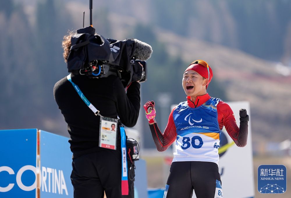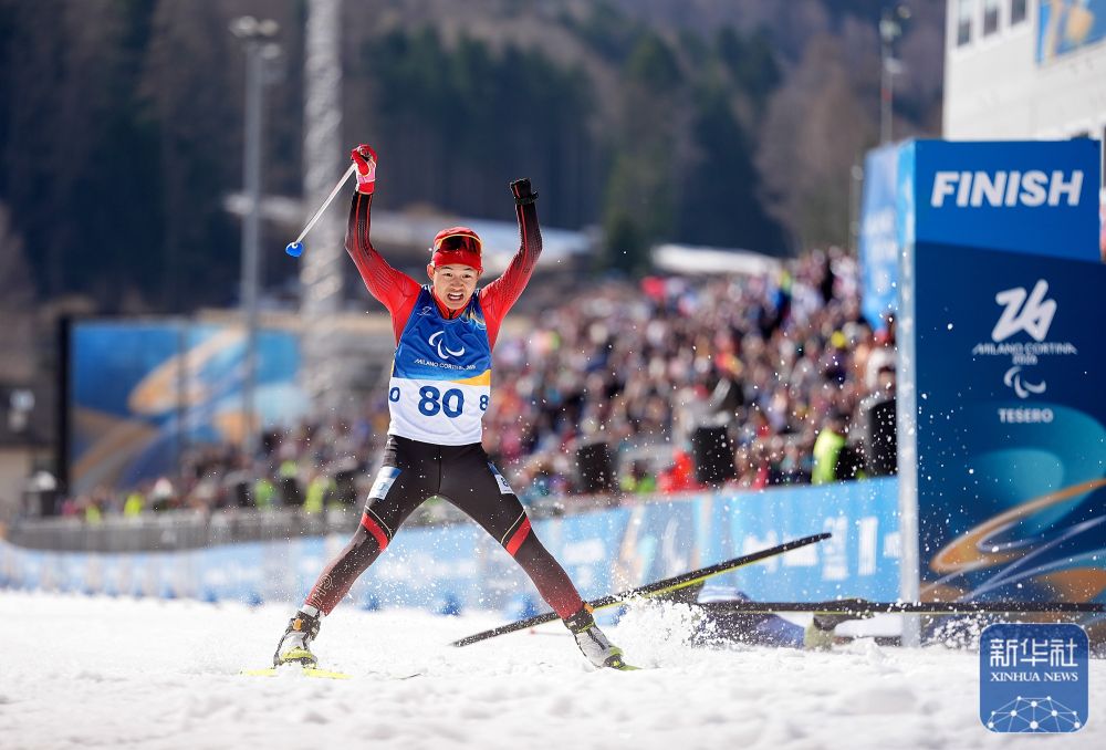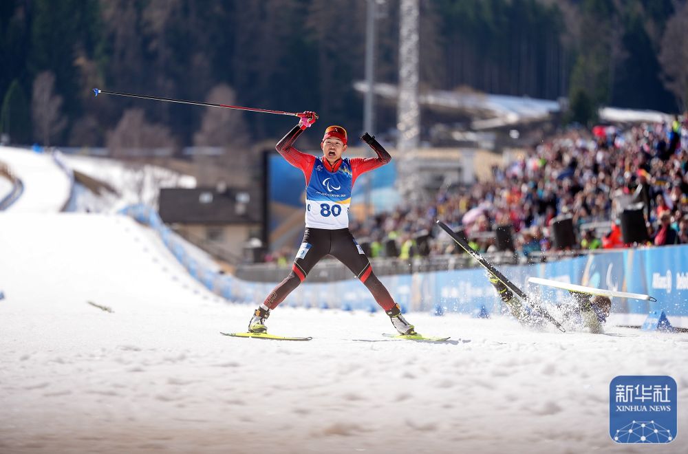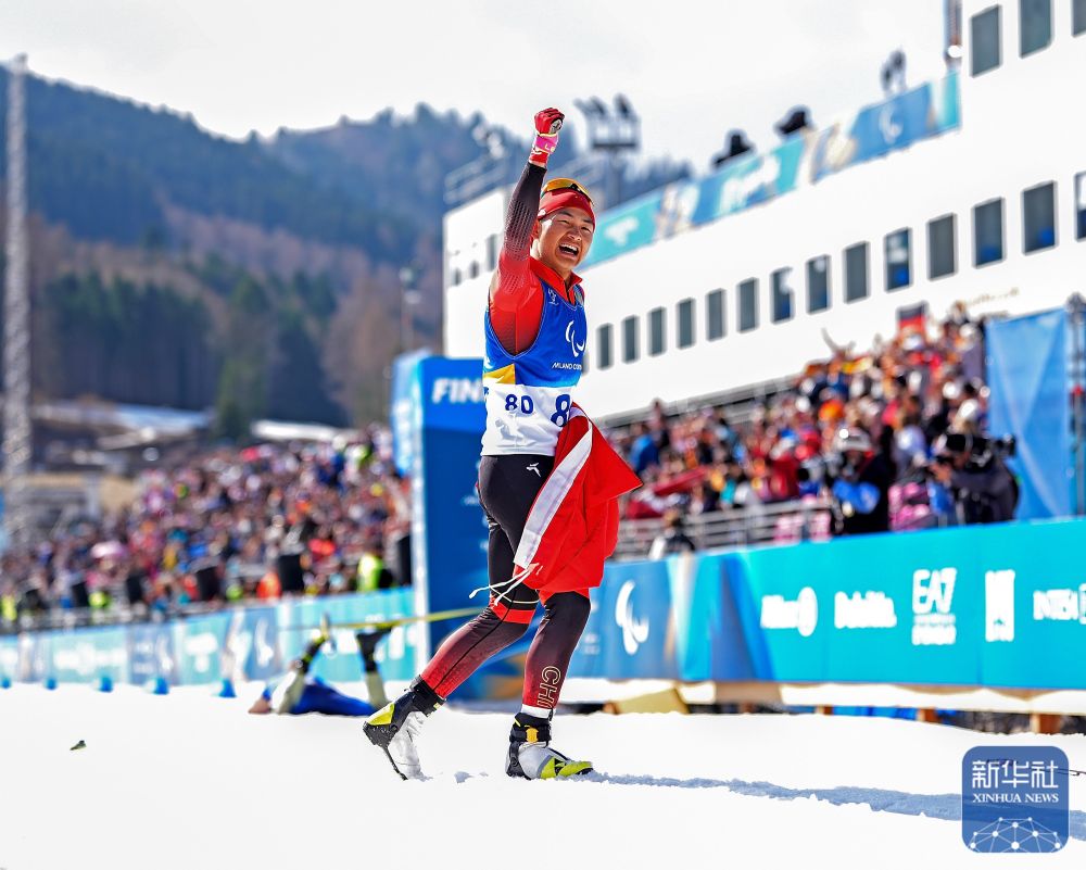 当地时间3月13日,在意大利泰塞罗举行的米兰-科尔蒂纳冬残奥会冬季两项男子短距离追逐(站姿)比赛中,中国选手蔡佳云夺得冠军。这是蔡佳云在本届冬残奥会上获得的第三枚金牌。
